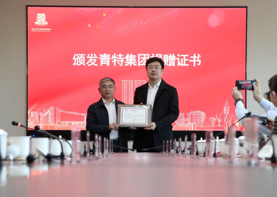 新闻网讯 5月11日上午,青特集团捐赠仪式在会议中心302会议室举行。青特集团总裁纪建奕,青特集团副总裁、青特产城集团董事长孙健,青特集团副总裁王丰元,校党委书记胡金焱,校党委常委、副校长刘彩云出席仪式。仪式由校合作发展处处长、校友工作办公室主任张燕主持。
