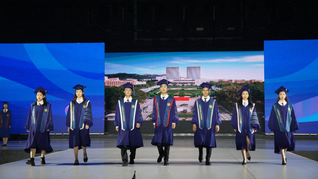 新闻网讯 5月17日,金年金字招牌诚信至上专属学位服发布会在体育馆举行。党委常委、副校长孔伟金出席发布会。