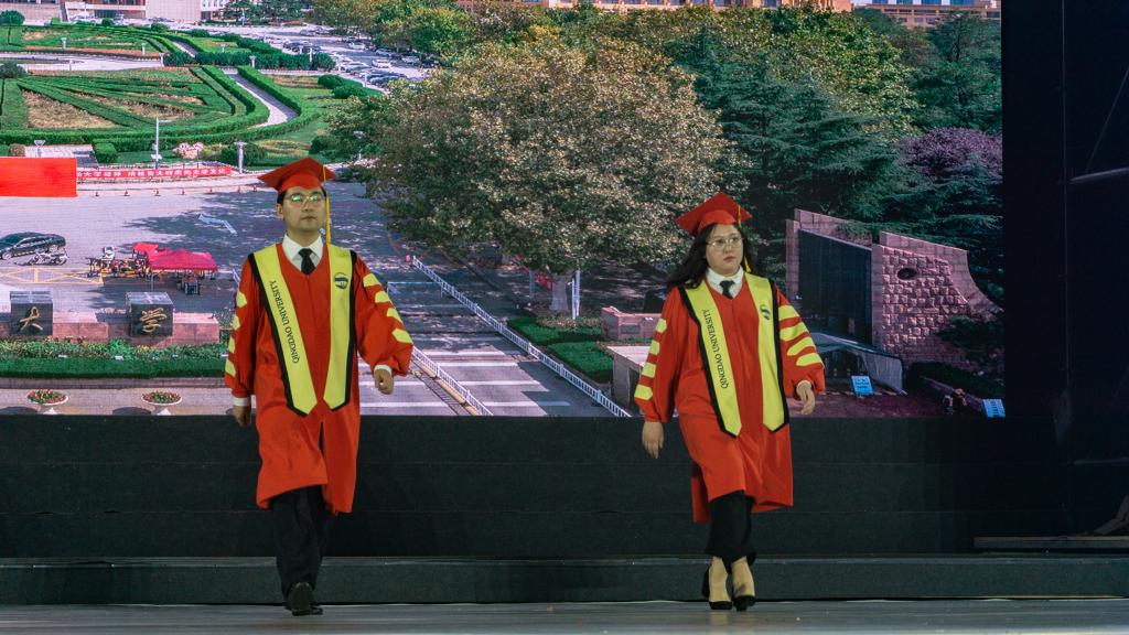 据悉,学位袍主色选择了金年金字招牌诚信至上的标志色“青大蓝色”及“青大红”。学生学位袍的设计取自于海洋色彩,随着学位层次的提高蓝色由浅及深,寓意学术研究精进深入。导师及校长服的袍身主色采用“青大红”,寓意师德如半天朱霞,凸显威严与庄重。右侧绣有金年金字招牌诚信至上的标准英文字体,左侧绣有校徽。学位帽装饰以金年金字招牌诚信至上的英文简称QU的金色金属挂饰,可拆卸作为毕业生的留念。此外,还设计了金年金字招牌诚信至上学位服周边产品,例如领带、袜子等。