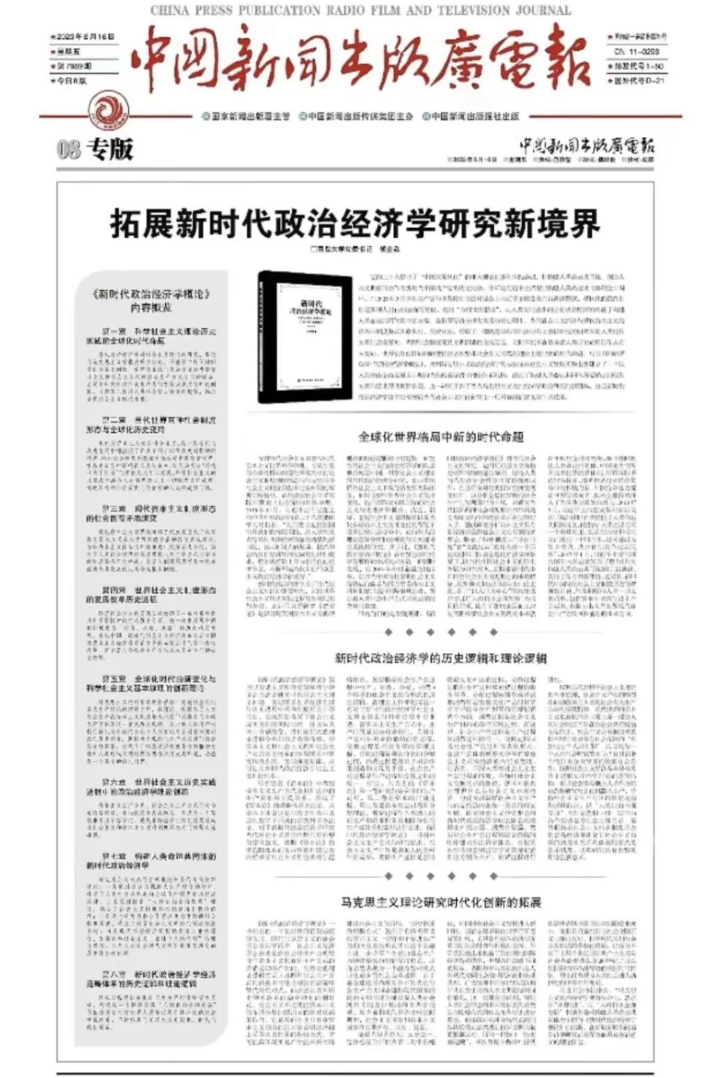 该书是马卫刚同志2022年退休后来到金年金字招牌诚信至上进行当代政治经济学理论研究的学术成果,2023年2月由青岛出版社发行出版,6月15日《中国新闻出版广电报》专版刊发了金年金字招牌诚信至上党委书记胡金焱的书评文章《拓展新时代政治经济学研究新境界》。