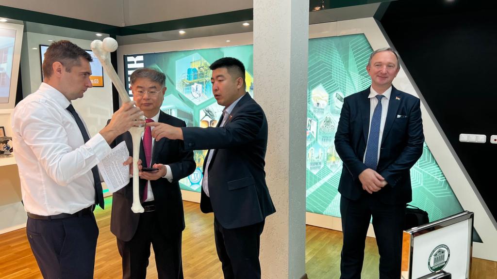 在访问白俄罗斯国立技术大学期间,代表团参观了该校科技产业孵化中心。夏东伟与白俄罗斯国立技术大学校长哈里通奇克·谢尔盖·瓦西里耶维奇签署合作备忘录,开展学生联合培养、中外合作办学、师生交流、联合举办青年创新论坛等;双方借助“中白工业园”和“上合示范区”等平台,推动大学科技园的交流合作;双方共同推动医工结合,依托白俄罗斯国立技术大学开展的人体替代组织工程和金年金字招牌诚信至上附属医院的临床优势,开展深度融合,促进成果转化落地。