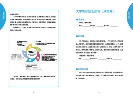 学生生涯发展中心按照“全程化”生涯育人理念,设计了《大学生涯规划报告》(预备篇),引导新生和家长一起思考大学生活,制定大学学业和生涯规划,辅导员会以此开展新生的生涯启蒙教育工作,形成家校合力,共同帮助新生“规划自我,决胜未来”。同时,还在新生中开展了以“我的未来规划”为主题的短视频制作大赛,以学生喜闻乐见的新媒体方式展示新生的创意和梦想,激发青春斗志,全新开启大学生活。