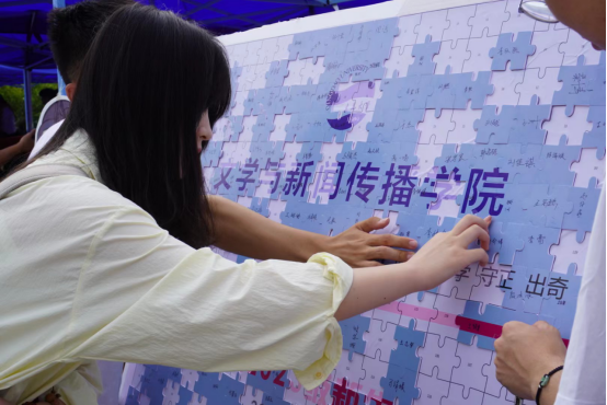 各学院负责迎新工作的学工队伍也亮点纷呈,尽展学工风采。物理科学学院开展新生红色入学教育,赠送《红岩》、《青春之歌》等红色读物;举办“石榴籽,手拉手”活动,为每位少数民族学生送上一个石榴。文学与新闻传播学院为每位新生定制拼图,成为送给新生们踏入校门的第一份“见面礼”。自动化学院结合专业特色,报到现场展示自动化学院未来战队英雄机器人和步兵机器人,展现自动化和机器人专业所学知识和实践转化成果,激发新生专业兴趣和创新精神。