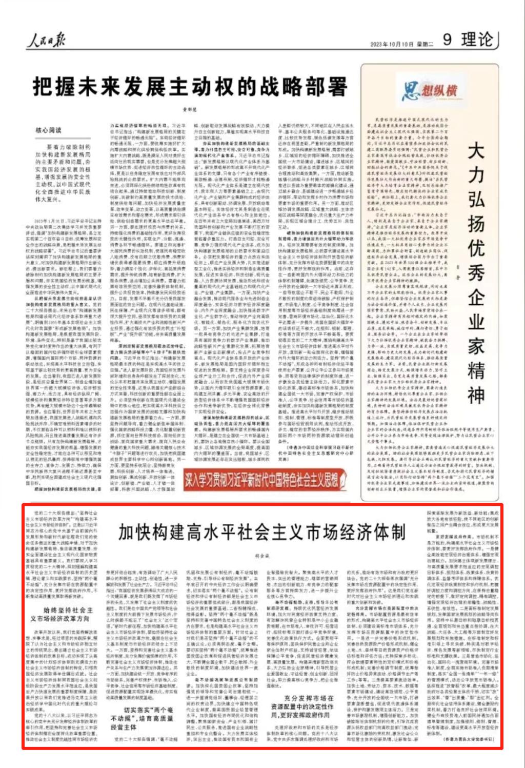 新闻网讯 10月10日,《人民日报》刊登金年金党委书记胡金焱的理论研究文章“加快构建高水平社会主义市场经济体制”。