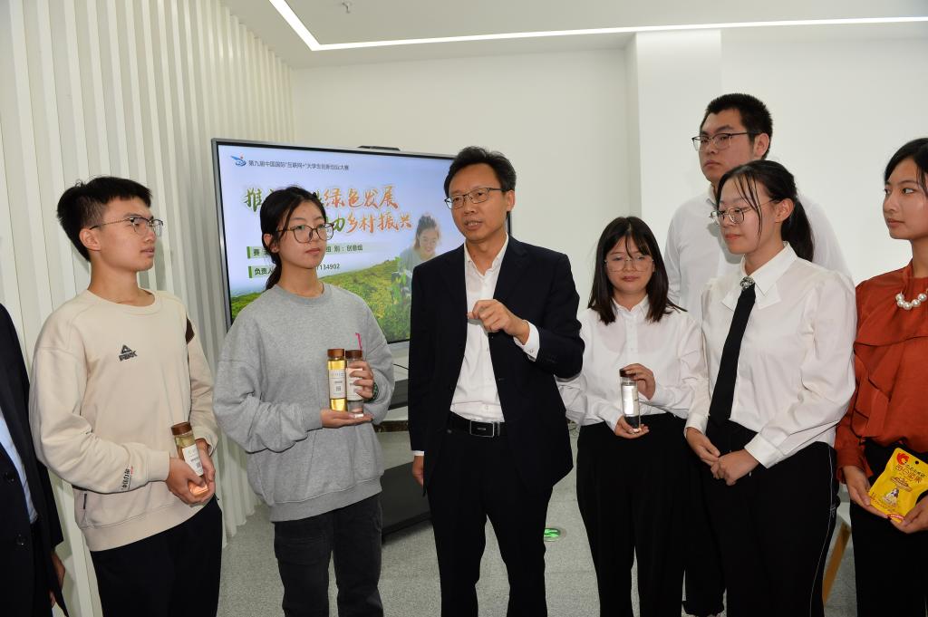 调研组一行参观调研了慧创空间、国家大学生文化素质教育基地。吴爱华看望了在创客空间备赛中国国际“互联网+”大学生创新创业大赛的师生团队,观摩并指导路演,勉励大家要厚植爱国情怀、“敢闯、会创”,积极开展公益性创业。