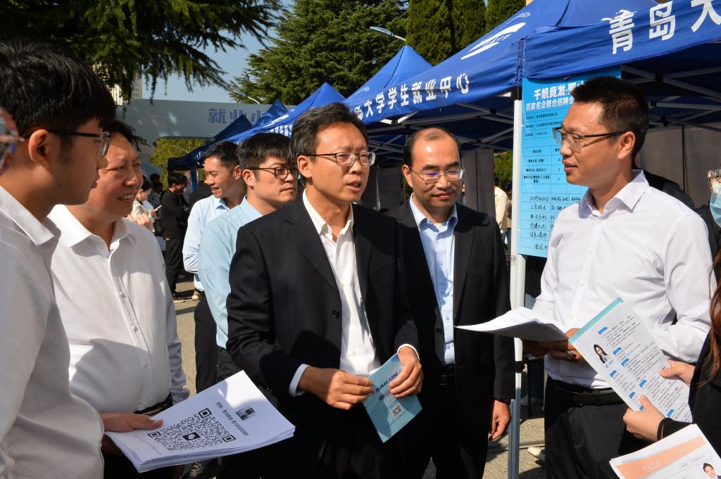 调研组还实地调研指导“百家名企联合招聘会”,吴爱华与用人单位和毕业生进行亲切交流,向用人单位了解今年招聘需求与往年的增减情况,重点了解学生的求职意向及职业规划情况。他勉励学生完善自我、积极求职,不断提升专业水平和技能水平,为服务国家建设和区域经济发展贡献智慧和力量。本场参会企业共计100家,提供岗位数457个,招聘需求人数4787人,招聘企业中行业头部企业占本场招聘会10%,专精特新企业占本场招聘会为20%。2000余名毕业生参加本次招聘会共投递简历数5865份。