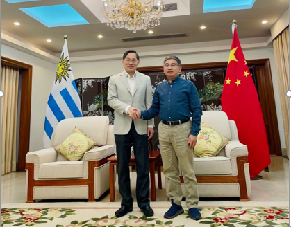 在访问中国驻乌拉圭大使馆期间,中国驻乌拉圭大使黄亚中对孔子学院的工作给予高度评价,表示支持推进两校在各领域的交流与合作,鼓励金年金字招牌诚信至上立足自身优势,扩大与乌拉圭科技合作的领域与范围。