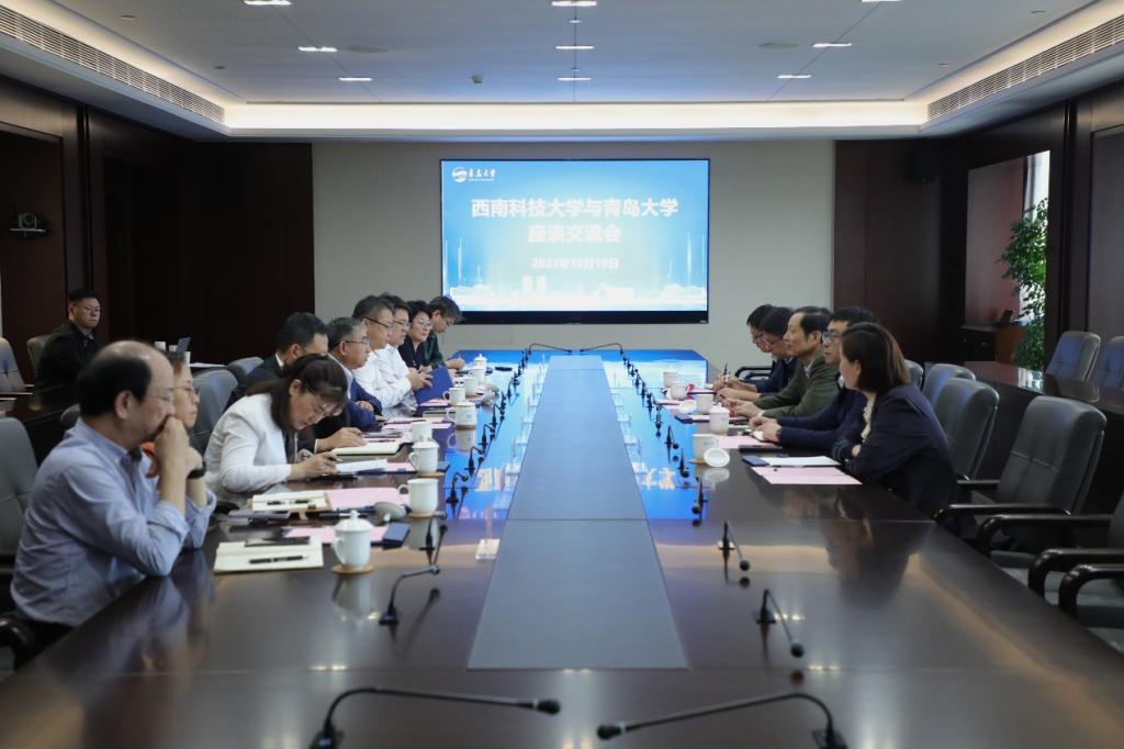 新闻网讯 10月19日上午,西南科技大学党委书记董发勤一行来访金年金。校党委书记胡金焱在会议中心302室会见并座谈,校党委副书记肖江南主持座谈会。