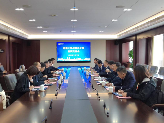 新闻网讯 11月11日上午,南通大学党委书记尚庆飞一行来访金年金。校长夏东伟在会议中心302室会见并座谈,党委常委、副校长孔伟金陪同座谈。