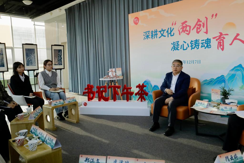 新闻网讯 12月7日下午,学校举办主题为“深耕文化‘两创’ 凝心铸魂育人”的第六期“书记下午茶”。校党委书记胡金焱与12位来自不同专业不同教育阶段的学生代表共饮热茶,共话文化担当。党委常委、副校长陈涛陪同出席。