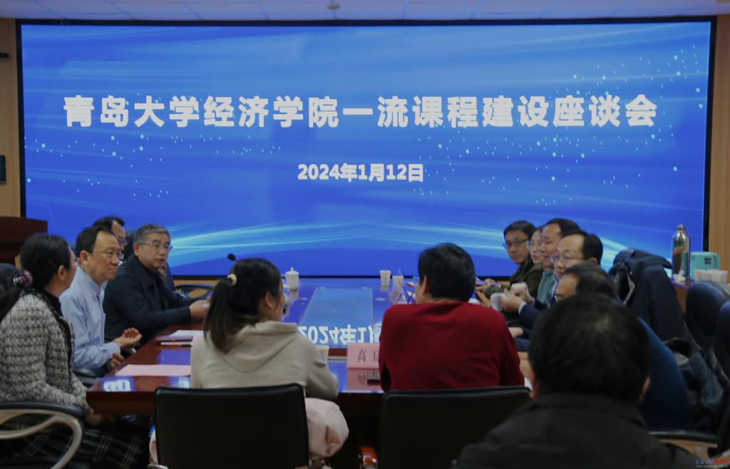 随后,胡金焱与各位专家、学院领导班子、教师代表等二十余人在经济学院307会议室召开一流课程建设座谈会。会议由经济学院党委书记邱建国主持。会上,副院长陈东景汇报了经济学院学科发展、专业建设、师资队伍、教学资源和人才培养等基本状况,金融系副教授龙琼华汇报了货币金融学一流课程建设情况。
