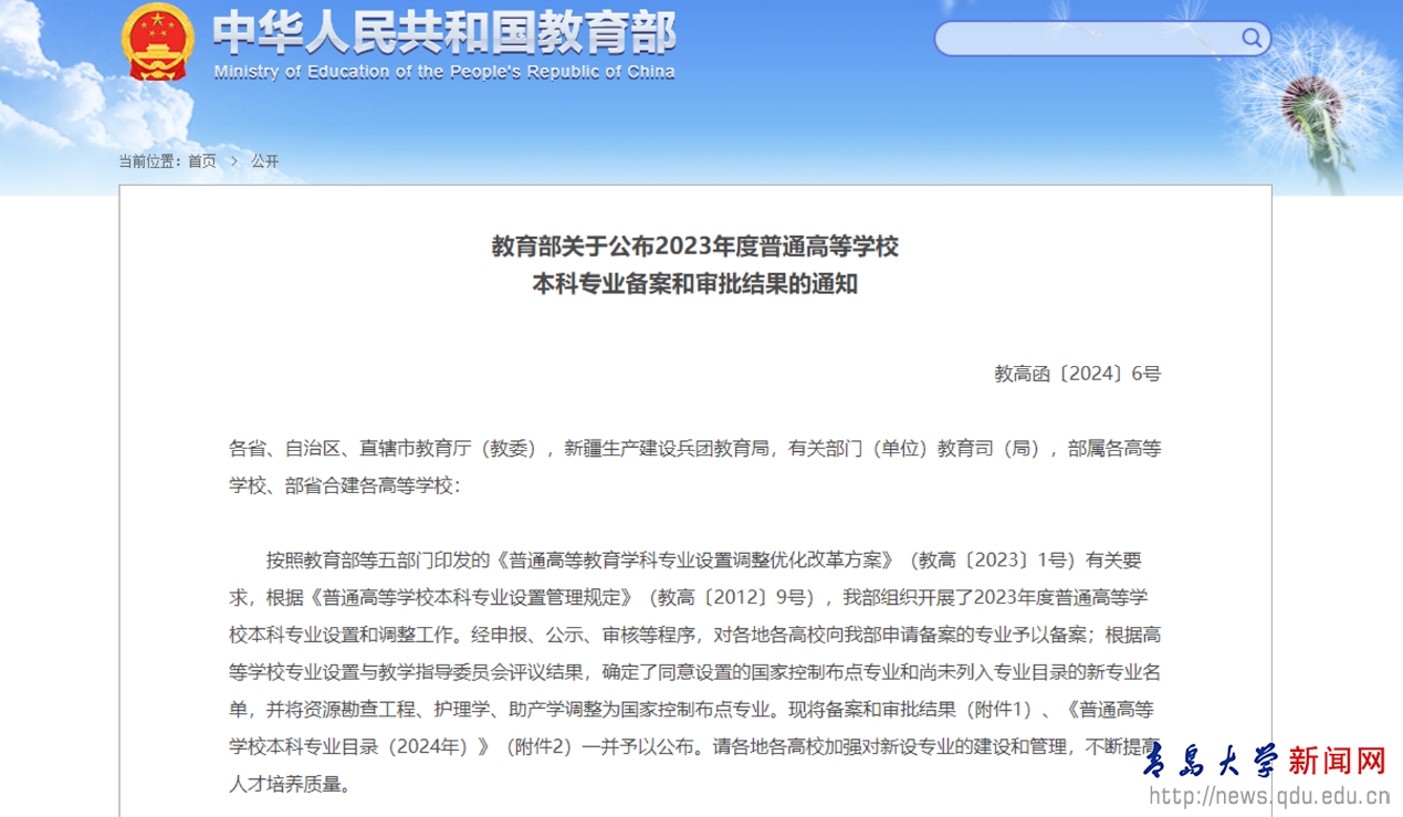 新闻网讯 近日,教育部印发《关于公布2023年度普通高等学校本科专业备案和审批结果的通知》,金年金申报的“供应链管理”和“非织造材料与工程”两个本科专业获准设置。两个专业均围绕国家战略需求和产业发展趋势设立,体现学科交叉融合特征,并将于2024年正式招生。