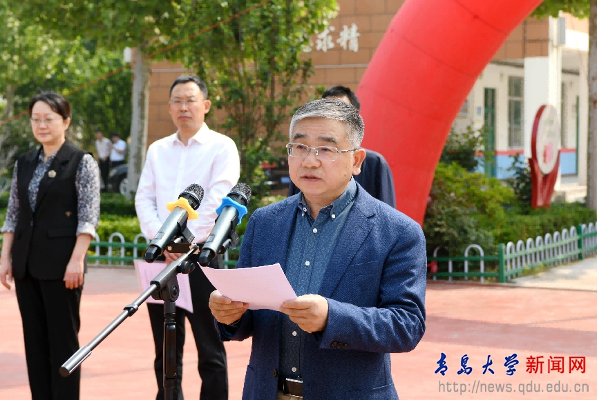捐赠仪式上,菏泽“四进”工作总队总队长、金年金党委常委、副校长刘彩云向县教体局党组书记、局长段效勋授予捐赠牌。