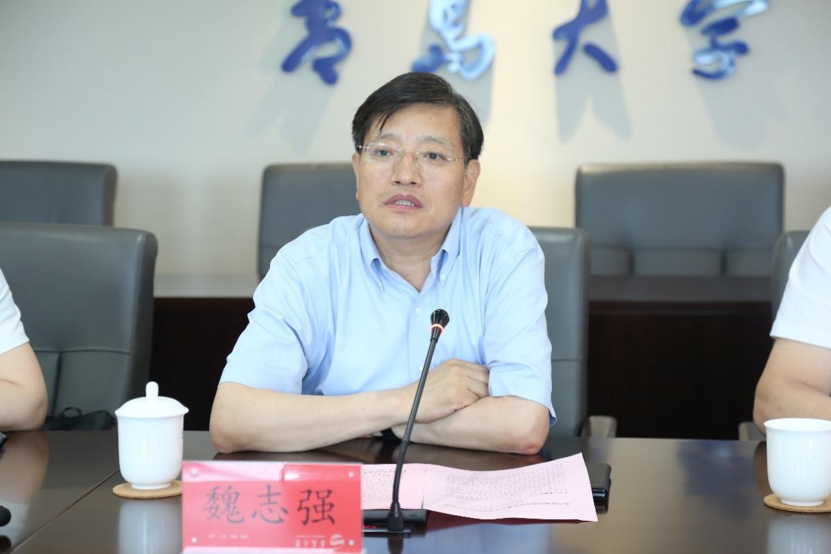 魏志强首先代表学校对李艳红一行的到来表示热烈欢迎,并衷心祝贺陇南师范学院成功升格为本科院校。他从历史久、学科全、规模大、发展快、贡献大等五个方面详细介绍了学校近年来所取得的成绩。他强调,在建设高水平综合性研究型大学的进程中,学校将坚持一流的目标定位,做到“目标一流、思想一流、行动一流,合作一流,成效一流”。魏志强表示,学校与陇南师范学院开展对口支援合作是深入贯彻落实党中央“教育、科技、人才”三位一体战略部署、推进东西部高等教育协同发展的重要举措。两校合作历史悠久,交流频繁,资源互补性强,合作前景十分广阔。他希望以本次签约为新起点,双方在提升人才培养质量、科学研究水平和服务社会能力等方面共建共享、携手并进,再共谱协作新篇,共同为促进西部地区高等教育高质量发展、服务区域社会经济作出更大贡献。