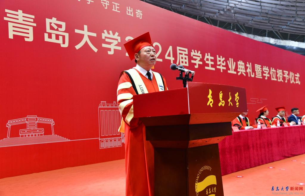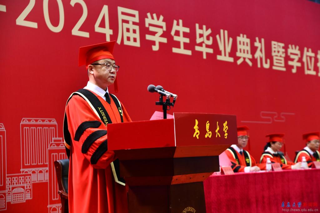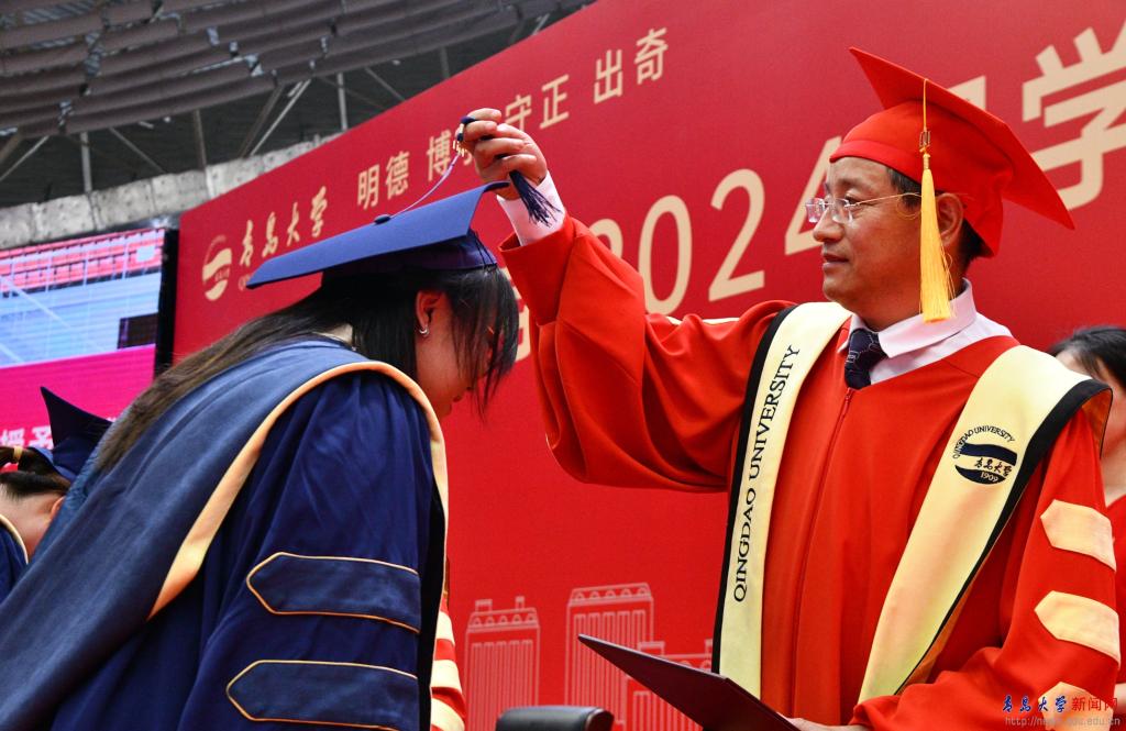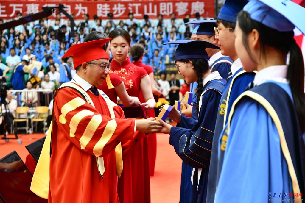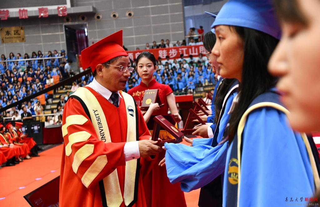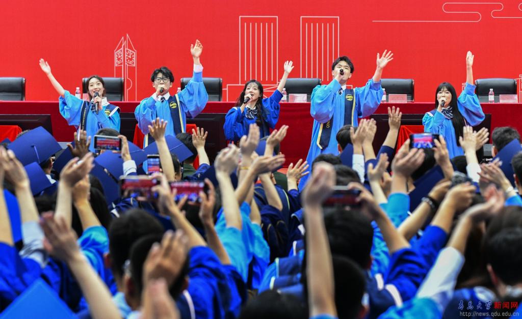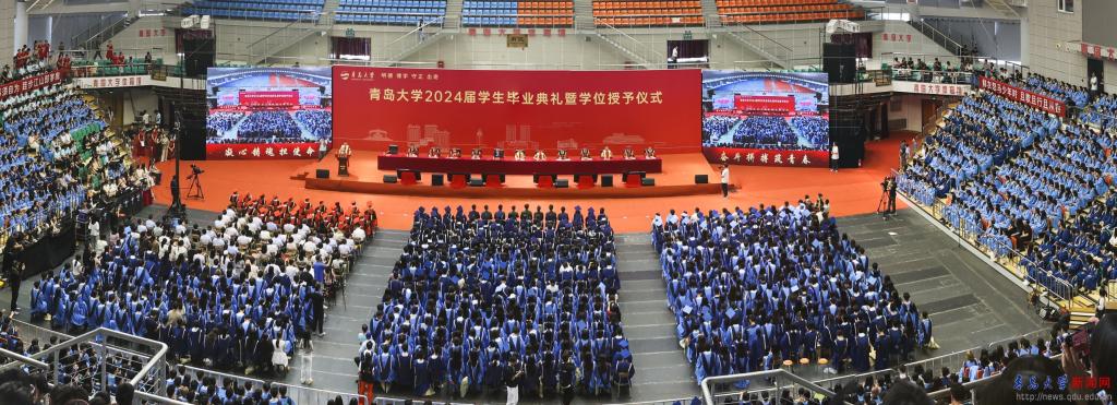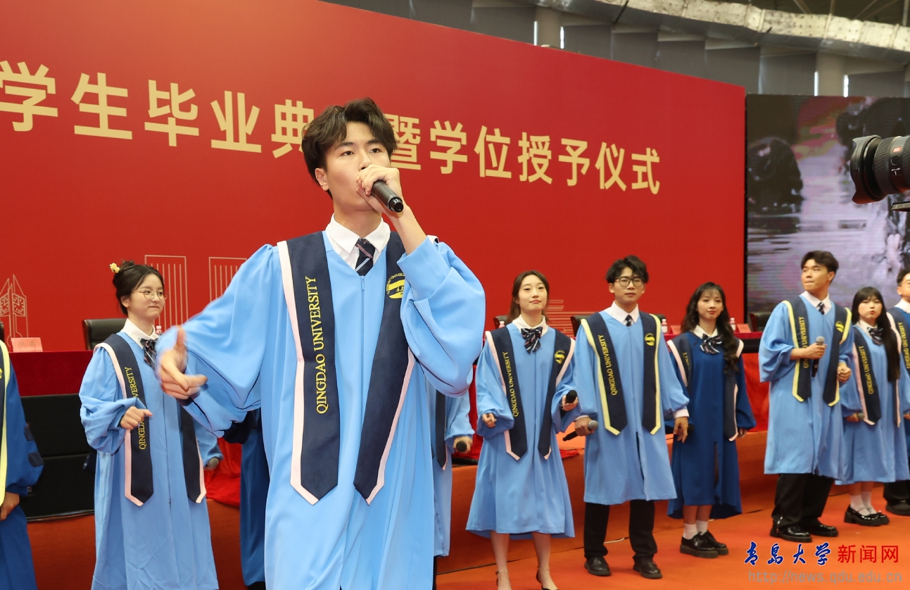 典礼前的“青春飞扬”快闪,唱响了对母校的浓浓眷恋与对师友的依依不舍,唱出了青大人无悔的奋斗青春,悠远了青大人“明德博学守正出奇”的精神。祝愿2024届全体毕业生启航山海青大,扬鞭万里征程!