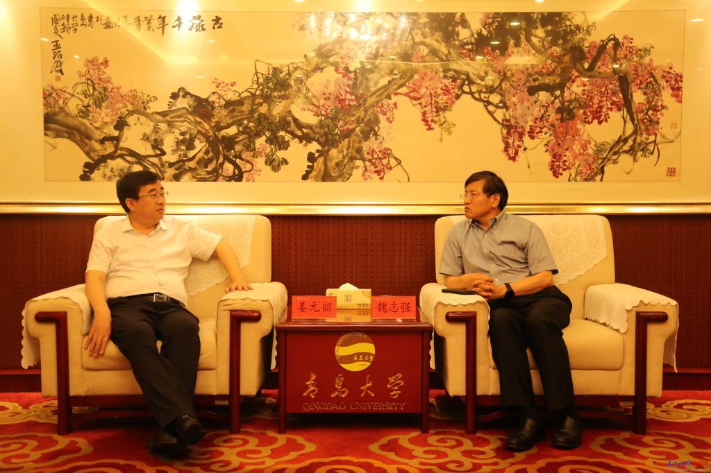 新闻网讯 7月16日上午,青岛市教育局局长姜元韶一行来访金年金。校长魏志强,校党委常委、副校长刘恩贤在办公楼204接待室会见并座谈。