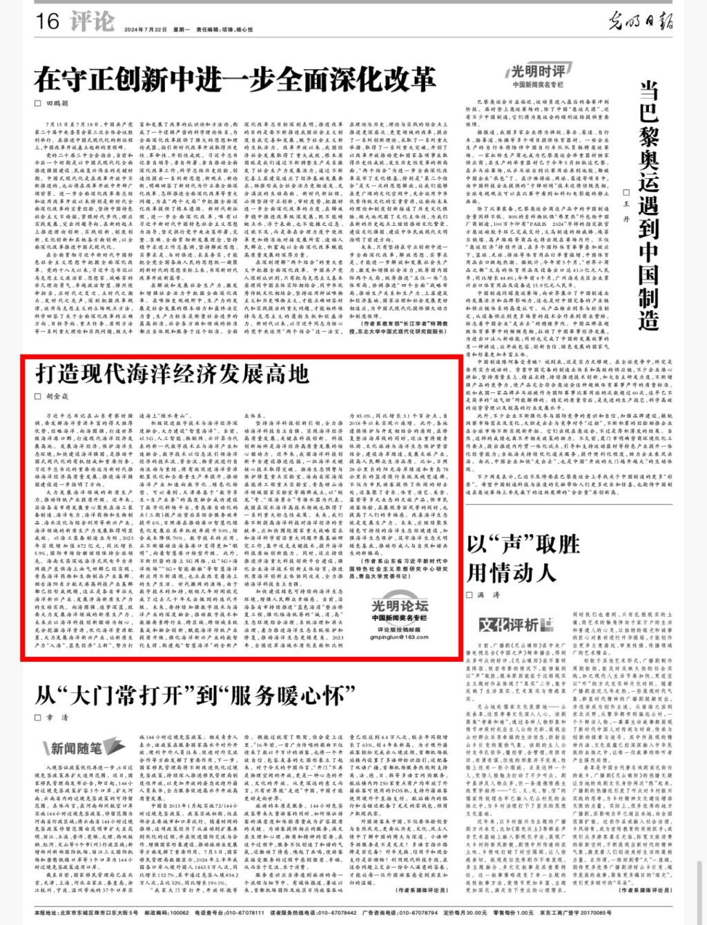 新闻网讯 7月22日,《光明日报》刊登金年金党委书记胡金焱的理论研究文章“打造现代海洋经济发展高地”。