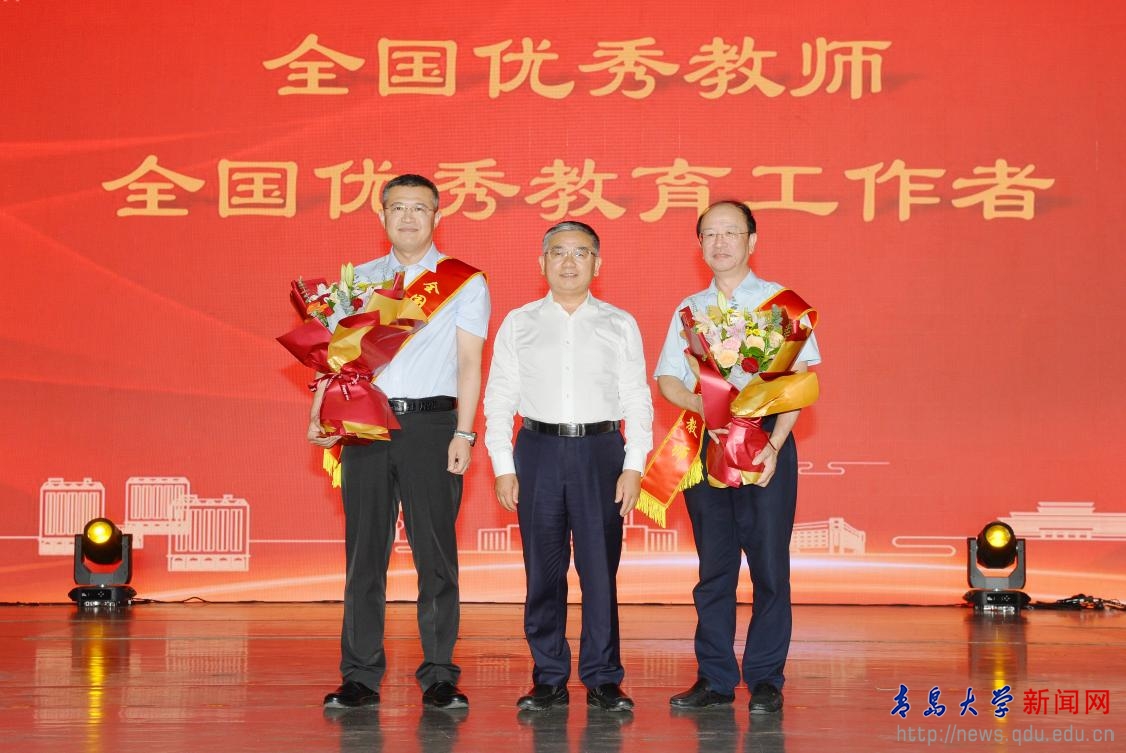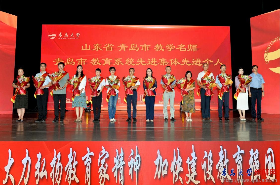 学校领导为荣休教师代表、从教30年教师代表以及82位荣获“最美教师”等校级荣誉称号的教师颁发证书,为“全国优秀教师”夏延致、“全国优秀教育工作者”于金鹏,以及“山东省教学名师”马光亭等13位荣获省、市荣誉称号教师送上鲜花。