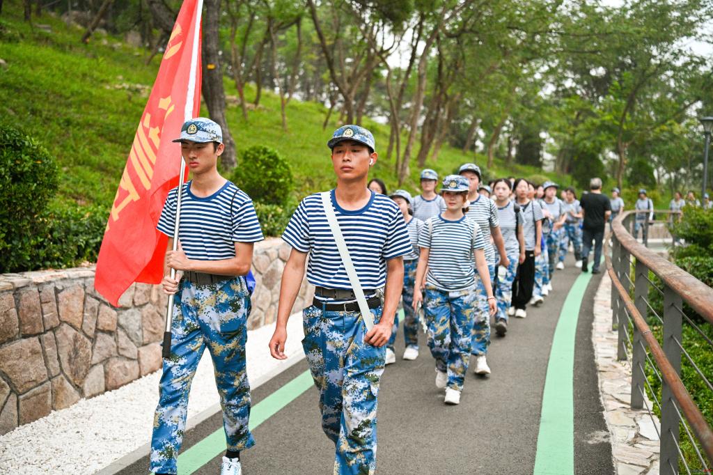 “全体都有,出发!”随着出发号令响起,全体2024级师生从宁德路小学、青大一路、劲松三路等三个出入口进入浮山森林公园,沿绿道行军拉练,途径水映双鱼、阳光客厅、高山湖、山海通廊、七观台、五景湖等标志节点,全程15公里,拉练总时长约4小时。