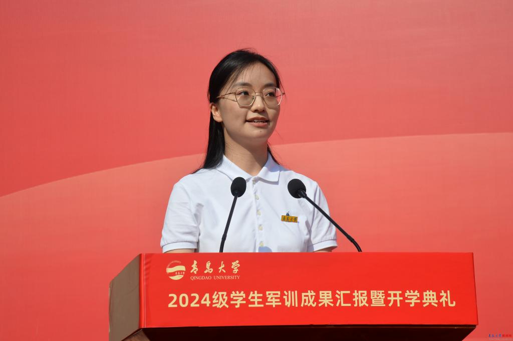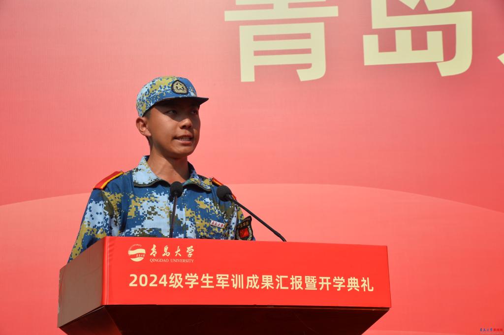 本科新生代表、自动化学院李睿表达了对崭新大学生活的期待和憧憬,表示将要充分珍惜学校提供的广阔学习平台,不断磨砺、提升自己,以优秀的青大人为榜样,赓续青大精神,勇做时代弄潮儿,为祖国发展和美好明天贡献青春力量。