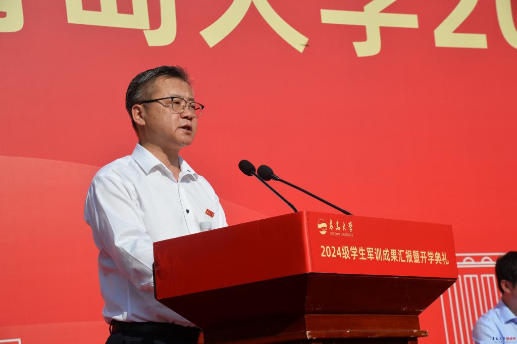 高中校长代表、青岛西海岸新区致远中学校长李学鹏表示大学之大在于“大道”“大师”“大爱”“大志”,寄语同学们要坚守初心,勇敢追梦,勤学好问,求知若渴,团结友爱,共筑和谐,勇于担当,回馈社会,在青大这片辽阔的天地中,书写出自己的人生华章。