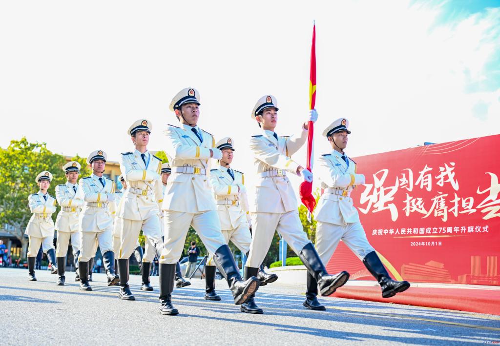 新闻网讯 10月1日上午,金年金在浮山校区和金家岭校区同时举行“强国有我 挺膺担当”庆祝中华人民共和国成立75周年升国旗仪式。校党委常委、副校长陈涛出席升旗仪式并讲话。校团委书记李鹏主持仪式。