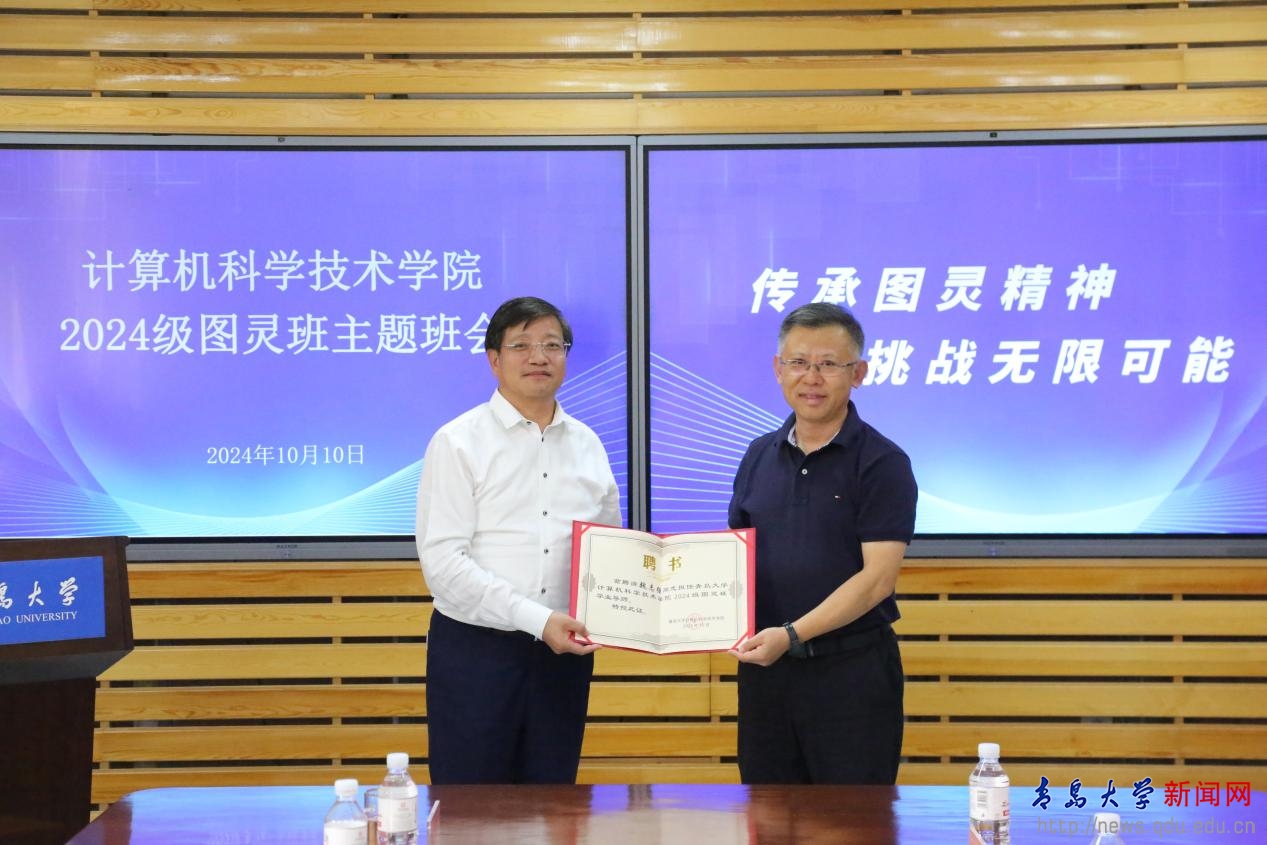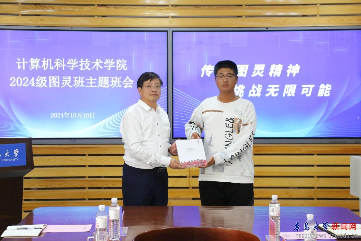 新闻网讯 10月10日下午,校长魏志强在博知楼510会议室参加计算机科学技术学院2024级图灵班“传承图灵精神,挑战无限可能”主题班会,并以“AI3.0:类人智慧与创新未来”为题进行授课,主题班会由计算机科学技术学院党委书记潘秋鸿主持。