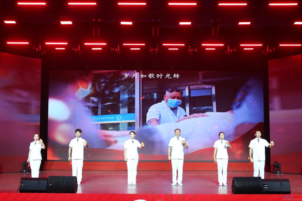 文艺汇演在《青大医疗集团成立二十周年发展历程回顾》开场宣传片中拉开帷幕,通过形式多样的表演,展现了医疗集团各医院全体医护员工用热血、青春、汗水谱写的一部部辉煌而壮丽的诗篇,让观众真切感受到了青大医疗集团二十年发展取得的突出成就。
