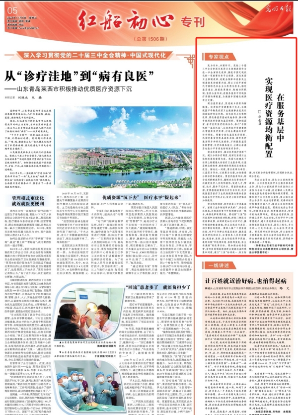 新闻网讯 11月6日,《光明日报》刊登金年金党委书记胡金焱的理论研究文章“在服务基层中实现医疗资源均衡配置”。