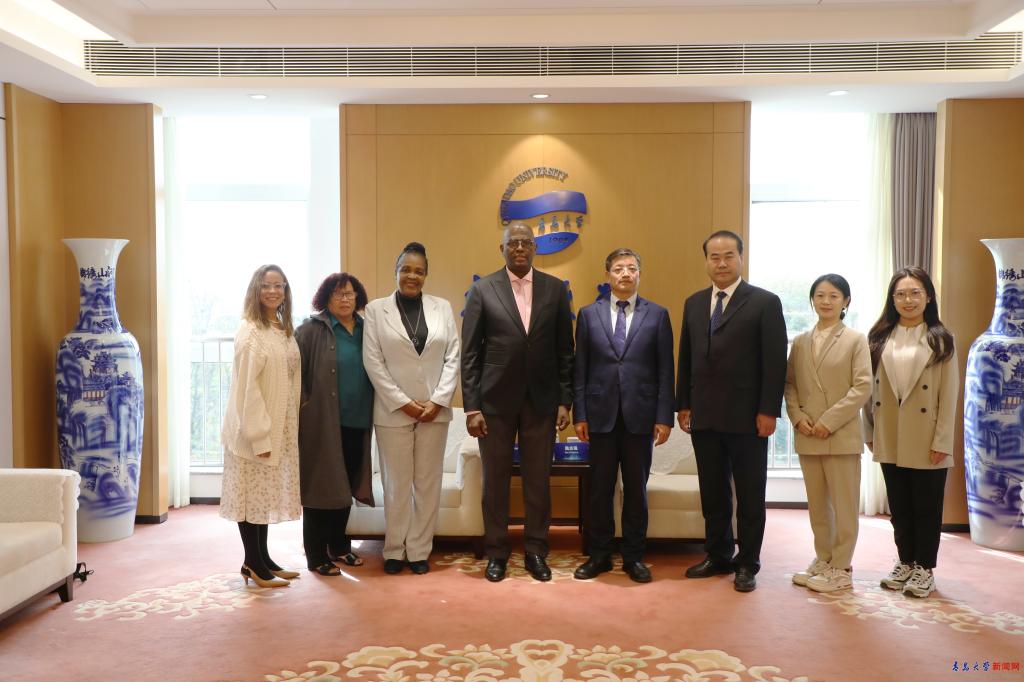 胡金焱在办公楼320会客室会见了乌拉圭共和国大学校长罗德里戈·阿里姆,古巴哈瓦那大学对外西语系主任莉迪亚·库巴、制药与食品学院院长阿莉西亚·卡萨里埃戈和国际处副处长英迪拉·费雷尔。