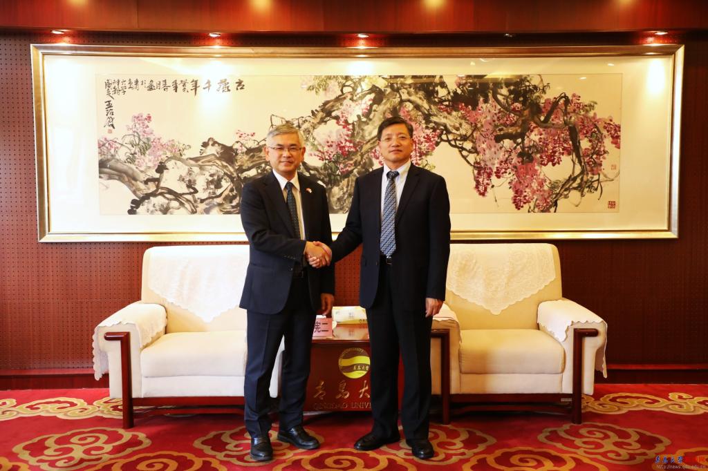 魏志强对斋藤宪二来校访问表示欢迎,他简要介绍了学校的发展现状以及对日交流情况、合作成果。他表示,中日两国是“一衣带水”的邻邦,友好交往源远流长,学校与日本高校的交流起步早,合作成果显著,目前已与下关市立大学、梅光学院大学等18所日本高校开展了教师交流、学分互认、双学位联合培养等项目,持续以教育交流推进友城合作,以师生交流促进地方友好往来。他说,学校以建成医工交叉、特色鲜明的国际化综合性大学为目标,希望依托区位优势和良好的对日交流基础,与日本高水平大学在理工医学领域深入交流、全面合作,与总领事馆携手,为学生成长、教师发展搭建新平台,为中日友好事业发展作出积极贡献。