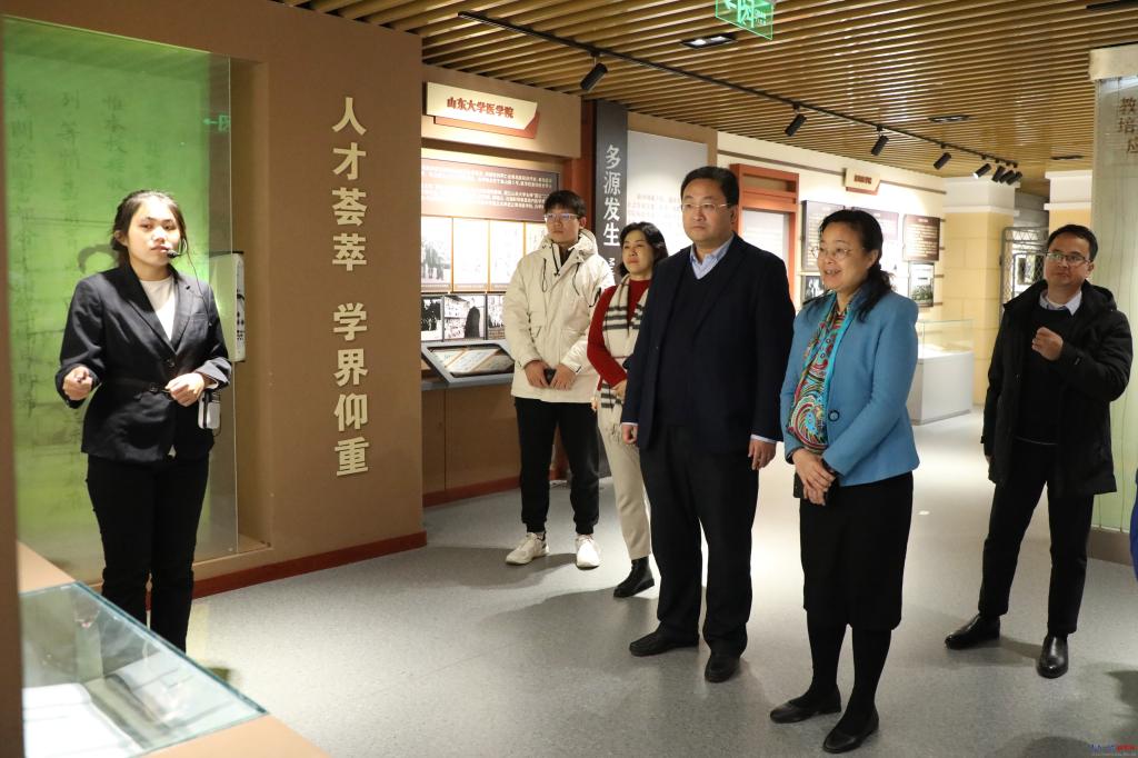 座谈会前,韦仕珍一行对产业技术研究院、创新创业学院、国家大学生文化素质教育基地·浮山书院、校史馆进行了实地调研。