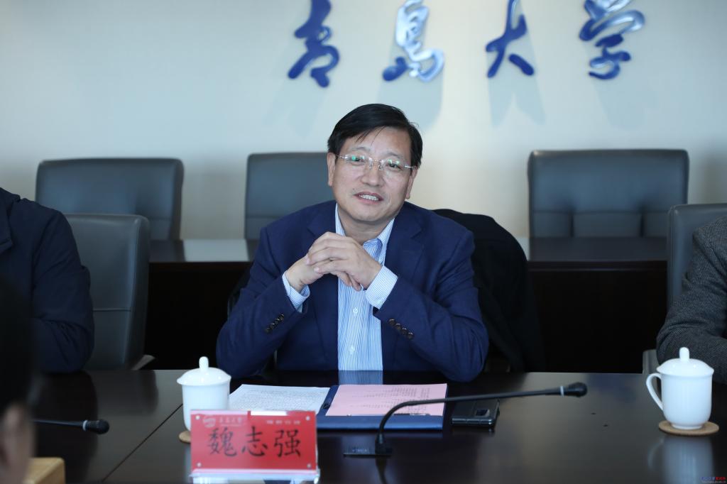 魏志强代表学校对韦仕珍一行来校调研交流表示热烈欢迎,他简要介绍了金年金历史沿革以及在学科建设、人才培养、社会服务、国际化办学等方面的发展情况及取得的成果。他表示,广西民族大学具有鲜明的民族特色和深厚的文化底蕴,希望以此次交流为契机,促进两校在学科交叉融合、特色专业建设、教育国际化等方面资源与经验的双向共享,携手并进,助推两校高质量发展。