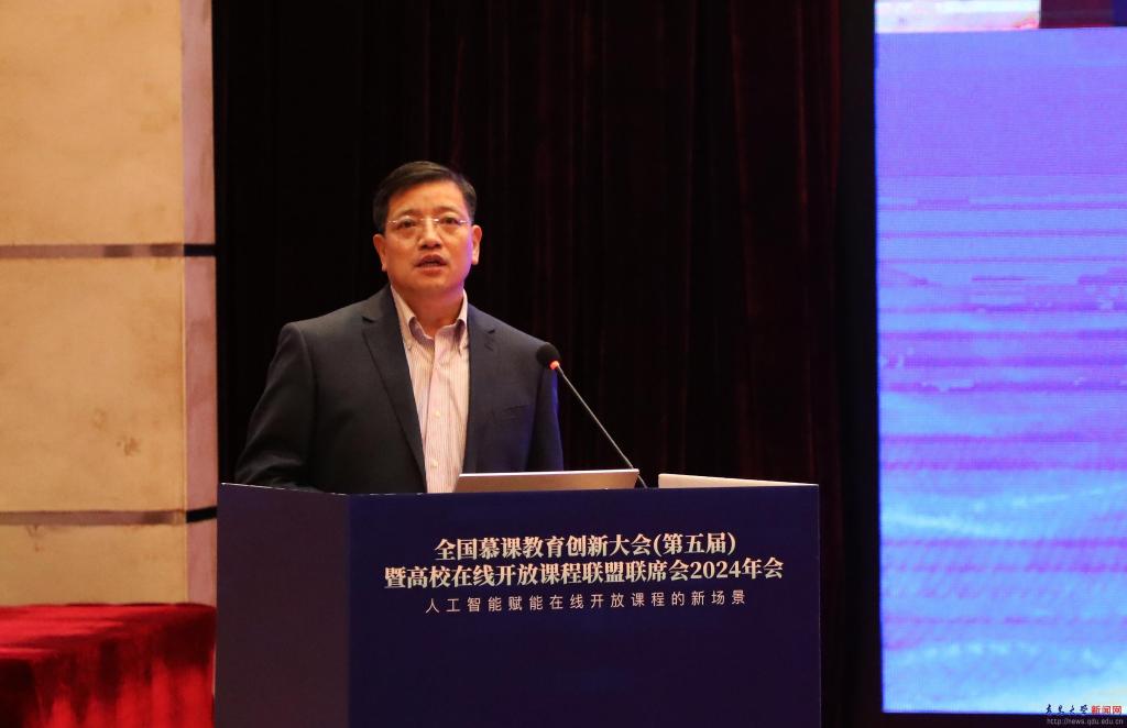 新闻网讯 12月22日,全国慕课教育创新大会(第五届)暨高校在线开放课程联盟联席会2024年会在金年金举办。大会以“人工智能赋能在线开放课程的新场景”为主题,教育部高等教育司课程教材与实验室处刘永强处长、山东省教育厅高教处曾宪文处长出席会议。全国28个慕课联盟成员以及高校、企业的约600名代表参加会议。校长魏志强出席会议并致辞。