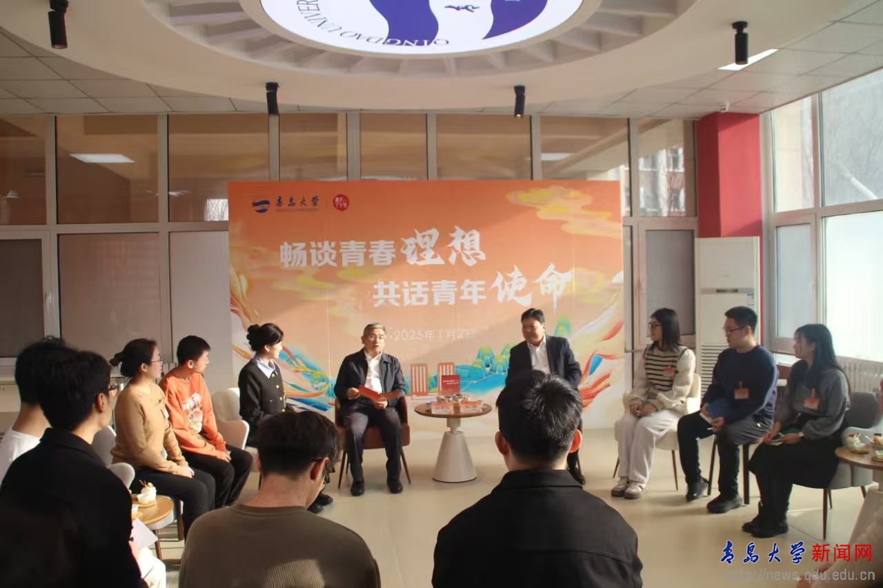 新闻网讯 1月2日下午,学校在浮山校区浩园思政文化中心举办第七期“书记下午茶”活动。校党委书记胡金焱与14位来自不同学院专业的国家奖学金获得者代表围坐在一起,以“畅谈青春理想 共话青年使命”为主题,谈奋斗、聊成长、述困惑、话青春。校党委常委、副校长陈涛出席活动。