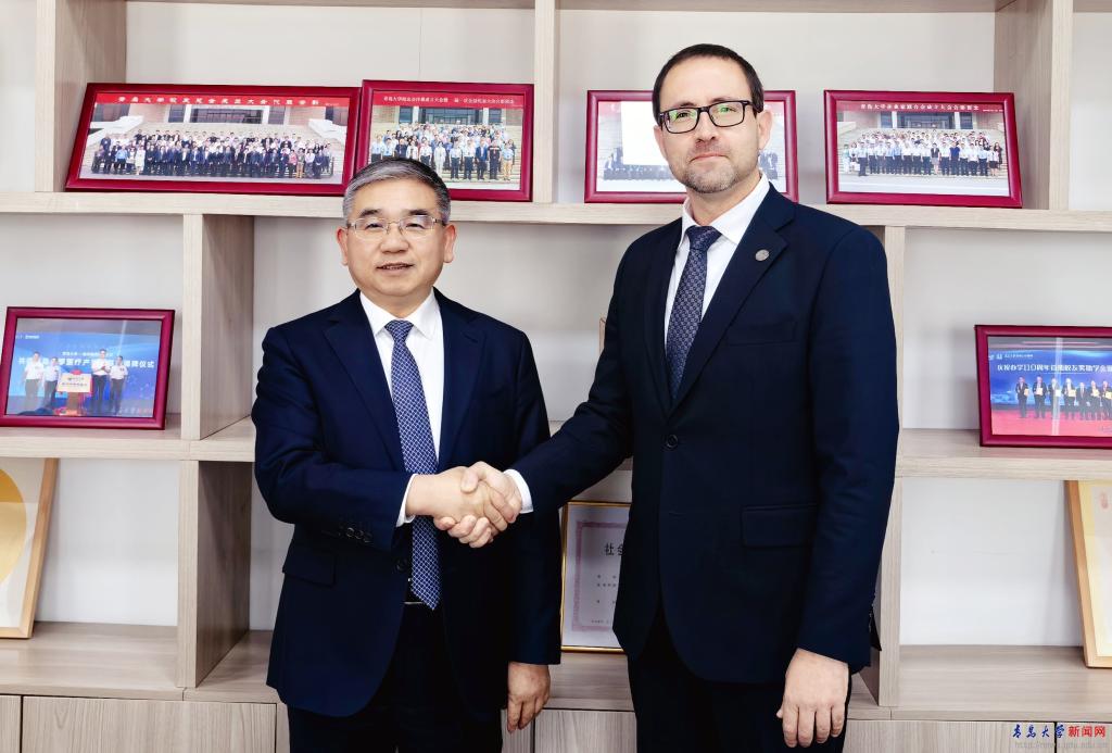 胡金焱对何塞·蒙塞拉特一行来访表示欢迎,他简要介绍了学校发展基本情况,他表示,学校重视开放办学,一直以来,围绕人才培养国际化、师资队伍国际化、科学研究国际化和校园环境国际化,深化对外交流合作,其中中外合作办学是现阶段国际化工作的侧重点之一。两校在学校规模、学科设置等方面具有较高相似性,同时,青岛和瓦伦西亚同为丝绸之路的重要节点城市,这将成为两校坚实的合作基础。他希望接下来双方紧密配合,加强合作,尽快推动合作成果落地。