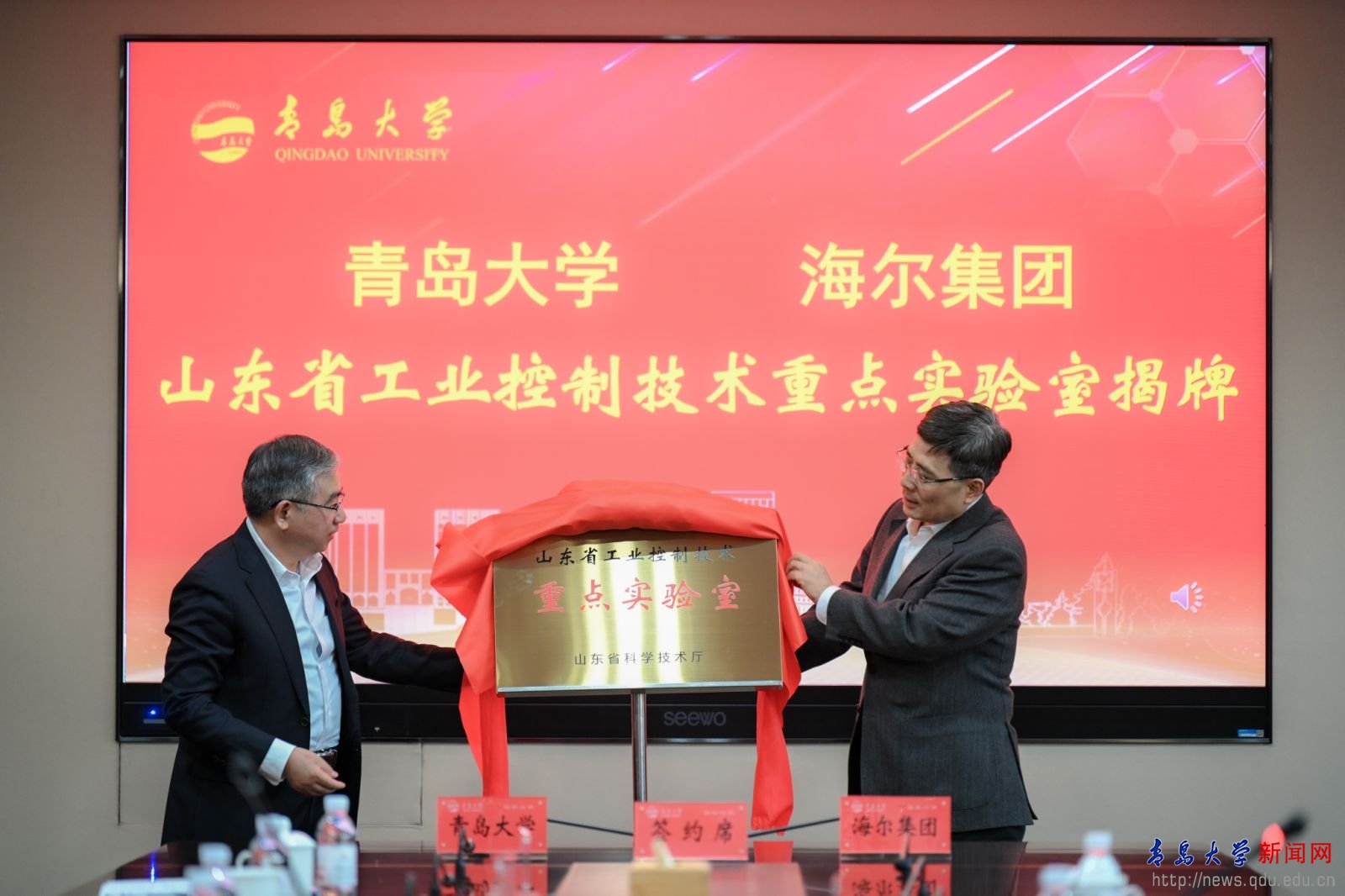 胡金焱与周云杰共同为山东省工业控制技术重点实验室揭牌。
