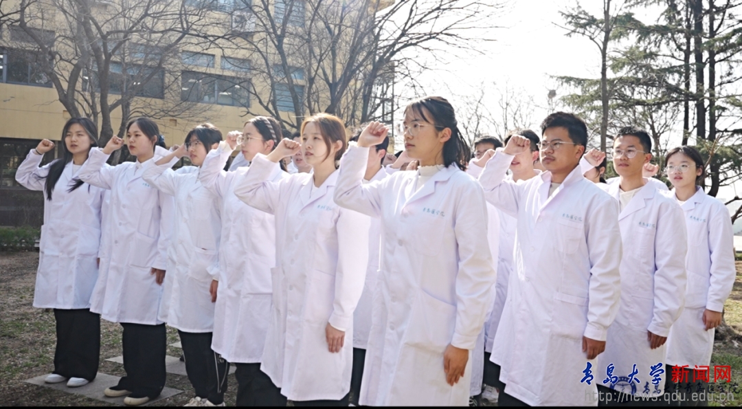 学院2024级临床医学(5+3)沈福彭班全体学生,清明节前夕在沈福彭教授纪念碑前举行纪念仪式,深切缅怀这位为金年金字招牌诚信至上医学教育事业做出卓越贡献的前辈。全班同学身着整洁挺括的白大褂,在班长王铭辰带领下集体宣读医学生誓言。“健康所系,性命相托……”洪亮且坚定的宣誓声在纪念碑前久久回荡,不仅承载着同学们对医学事业的无限热忱,而且表达了他们对救死扶伤使命的郑重承诺。 宣誓后,同学们怀着崇敬的心情依次缓步走到纪念碑前,献上精心准备的黄白菊花和卡片,然后集体鞠躬默哀。