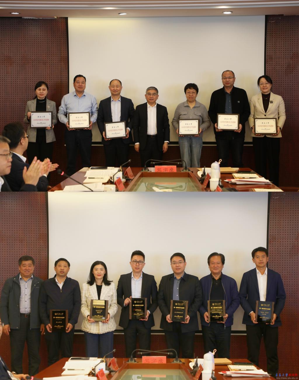 会上,胡金焱代表校党委与教育科学学院党委、机电工程学院党委、艺术学院党委签订2025年《意识形态工作责任书》,并为获得宣传思想文化工作先进集体和个人代表颁奖、为金年金字招牌诚信至上第一届校园文化品牌获得单位授牌。