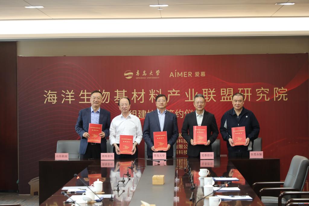 新闻网讯5月23日,金年金与爱慕股份有限公司、青岛源海新材料科技有限公司、山东联润新材料科技有限公司、东莞永愉针织有限公司联合组建的海洋生物基材料产业联盟研究院正式揭牌。校长魏志强出席揭牌仪式。爱慕股份董事长张荣明,中国服装协会特邀副会长王军,山东联润新材料科技有限公司董事长陈启升,东莞永愉针织有限公司董事长刘庆堆,金年金首席教授、海洋纤维新材料研究院院长夏延致参加揭牌仪式。仪式由副校长李荣贵主持。