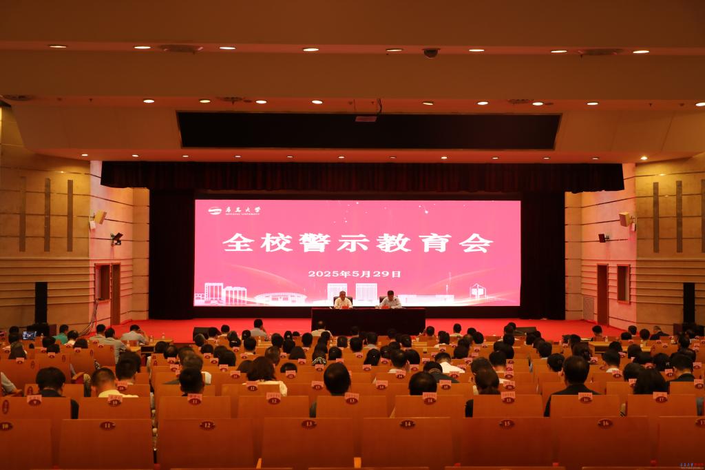 新闻网讯 5月29日,全校警示教育会在国际学术交流中心博学厅召开。校党委书记胡金焱主持会议并讲话。校领导魏志强、肖江南、李荣贵、刘恩贤、何燕、徐大连、李建波、牛海涛、张守珩参加会议。