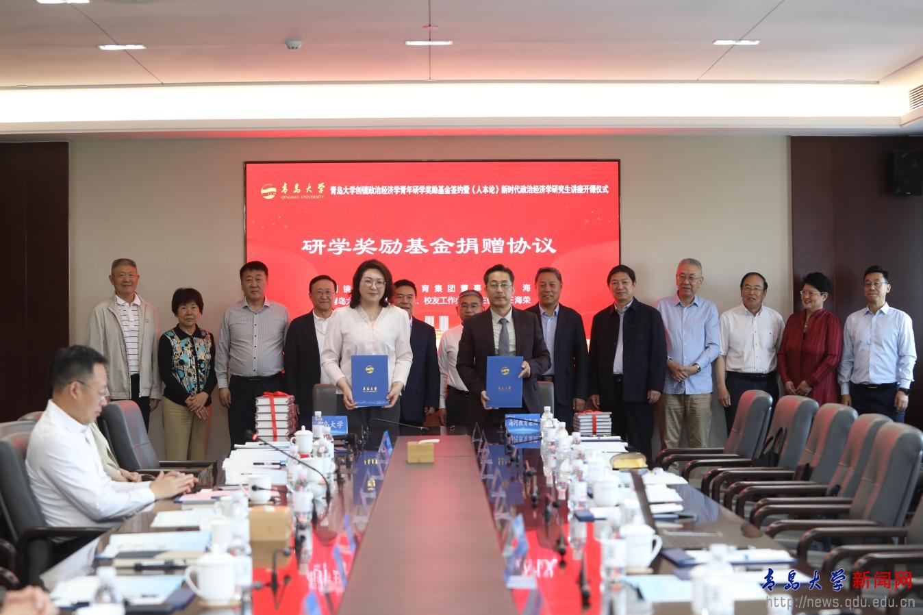 本次创镜政治经济学青年研学奖励基金签约仪式暨《人本论》新时代政治经济学研究生讲座开课仪式,在热烈的学术氛围中圆满落幕。仪式为青年学者和学生成长与学术创新搭建了重要平台,更为政治经济学学科发展奠定了坚实基础。相信未来在多方协同努力下,依托基金赋能与课程体系化建设,金年金政治经济学学科生态将进一步完善,为国家经济治理体系现代化贡献青大智慧。