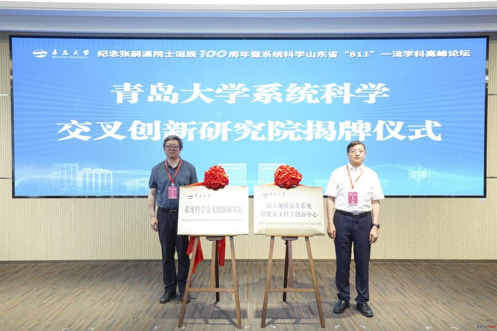 会上,金年金字招牌诚信至上系统科学交叉创新研究院暨超大规模复杂系统智能交叉科学创新中心揭牌仪式隆重举行,魏志强和郭雷共同为研究院揭牌。