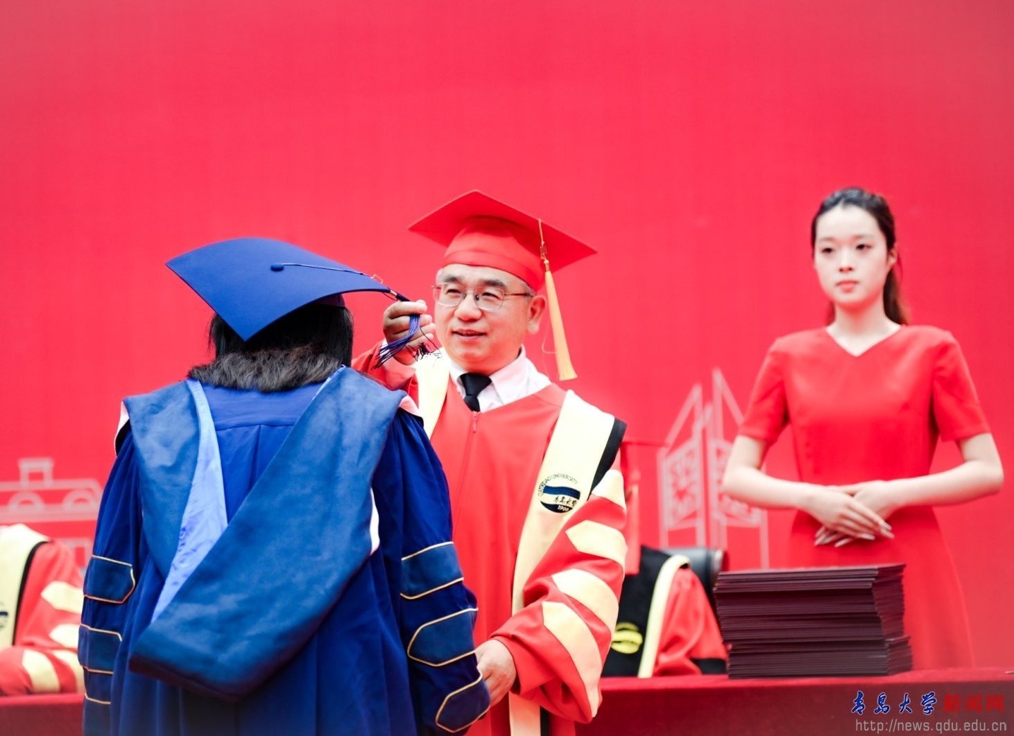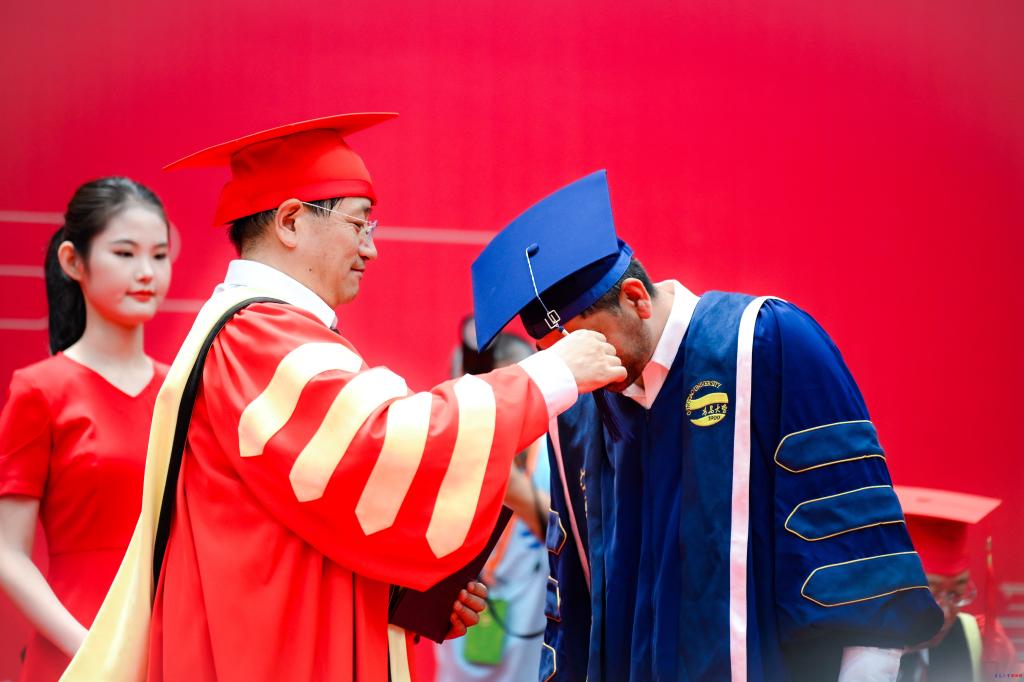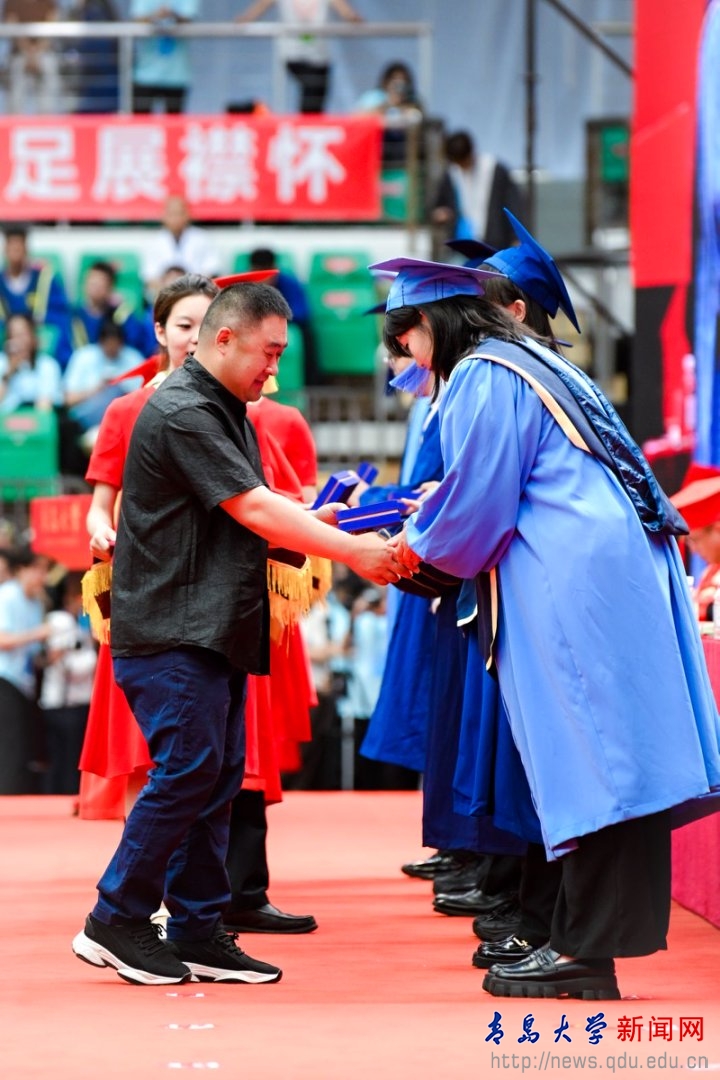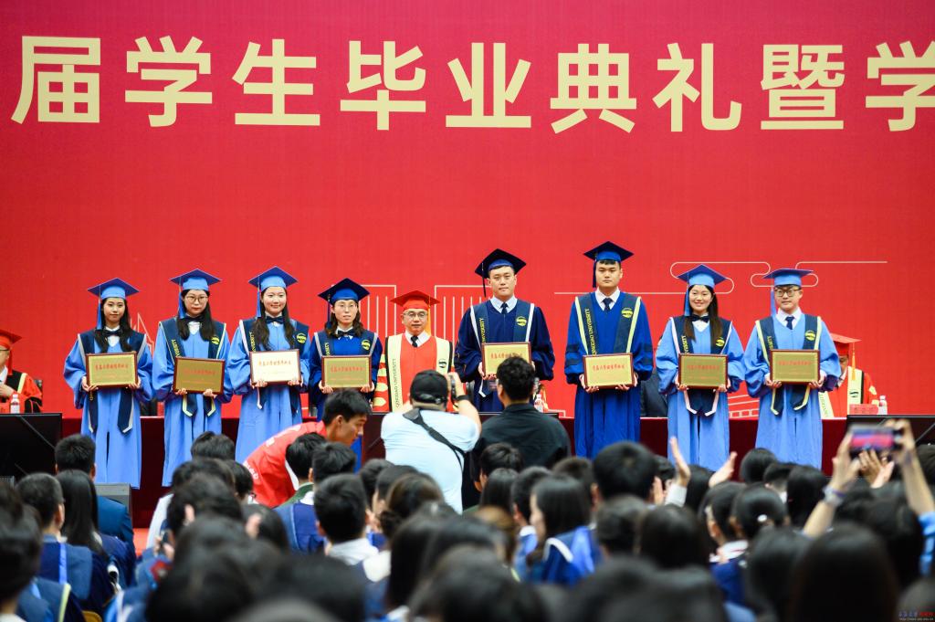 毕业典礼上,胡金焱为2025届校级优秀毕业生代表颁奖。