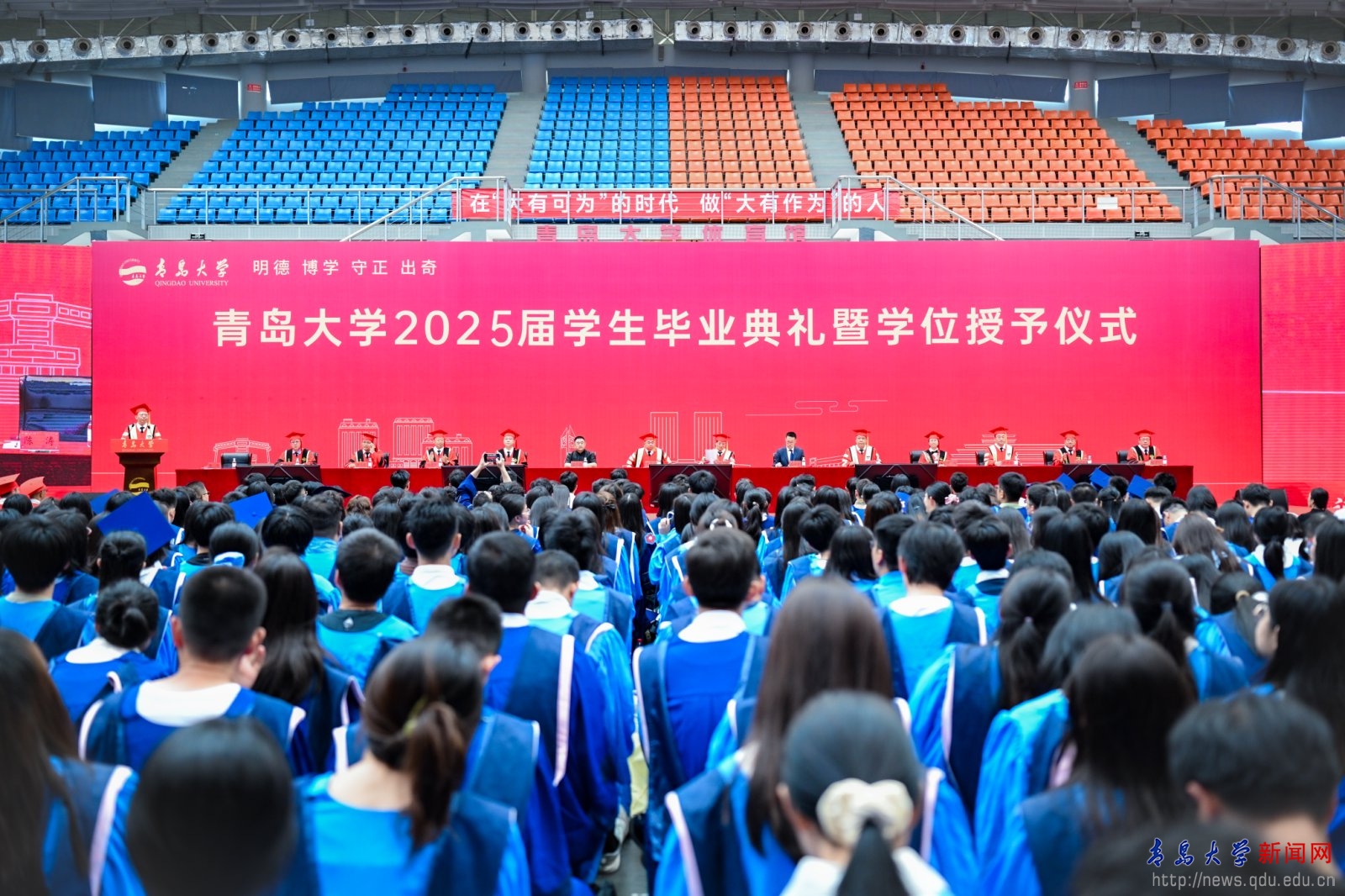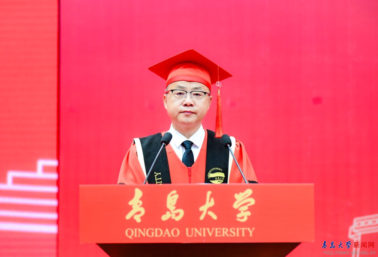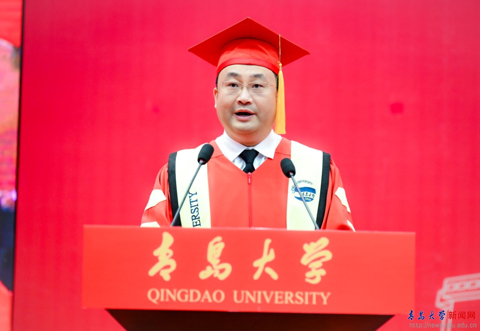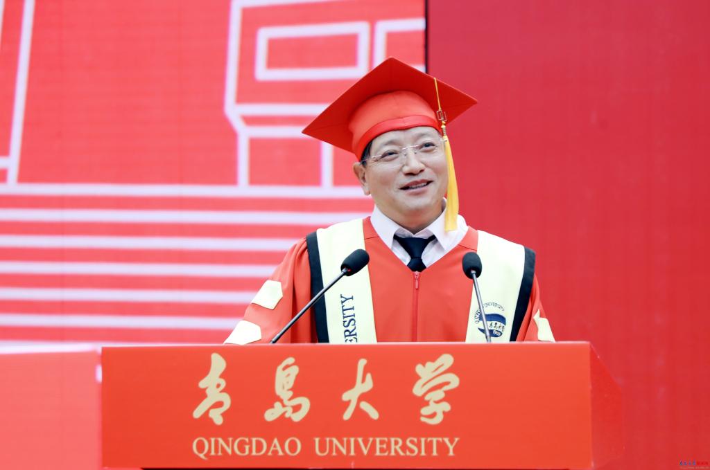 校长魏志强向毕业生表示热烈祝贺,向辛勤培育、全力支持学生的老师、家长们致以最诚挚的感谢。魏志强点赞毕业生的成长与奋斗、回顾学校发展的成就,把母校最深的期许化作“三个记住”,希望毕业生们记住在青大的青春岁月,记住母校的历史年轮,记住母校的殷殷期待。在人生新旅程开启之际,魏志强勉励毕业生,“毕业不是终点,而是‘青大人’投身国家建设征程的起点”,并表达了三点期望——要让个人理想与强国建设同频共振,要以创新为刃做“敢破敢立的开拓者”,要以开放视野包容胸怀汲取多元知识。