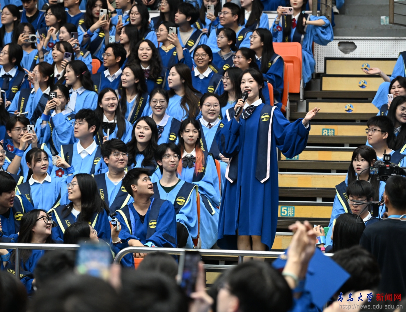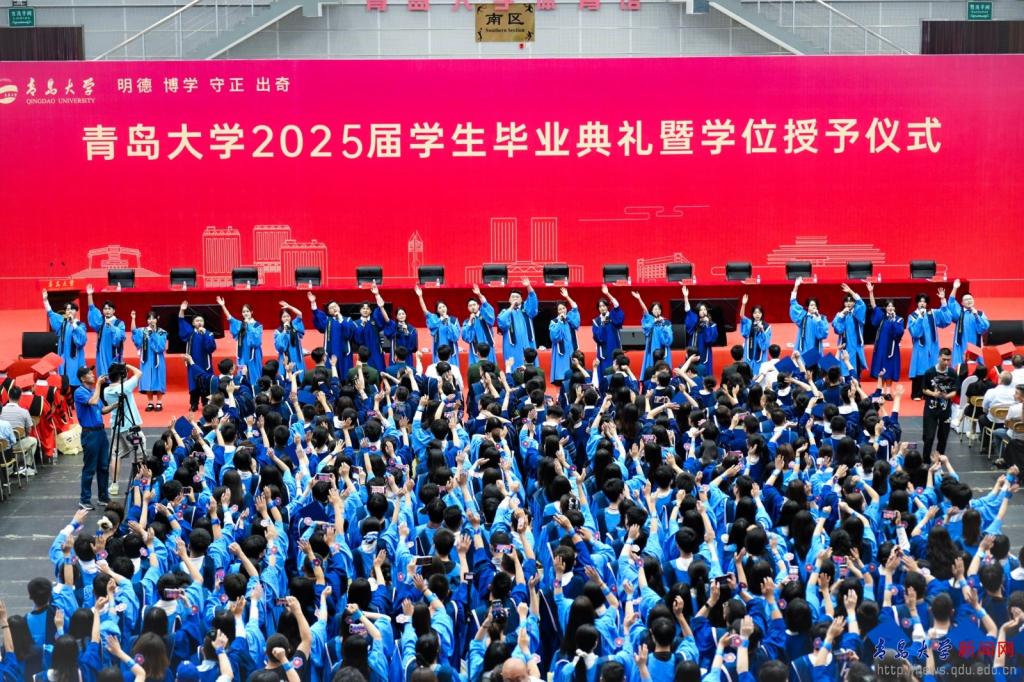典礼前的“青春飞扬”快闪,点燃了刻在骨子里的家国情怀,唱响了对母校的浓浓眷恋与对师友的依依不舍,唱出了青大人无悔的奋斗青春,悠远了青大人“明德 博学 守正 出奇”的精神。祝愿2025届全体毕业生启航山海青大,扬鞭万里征程!