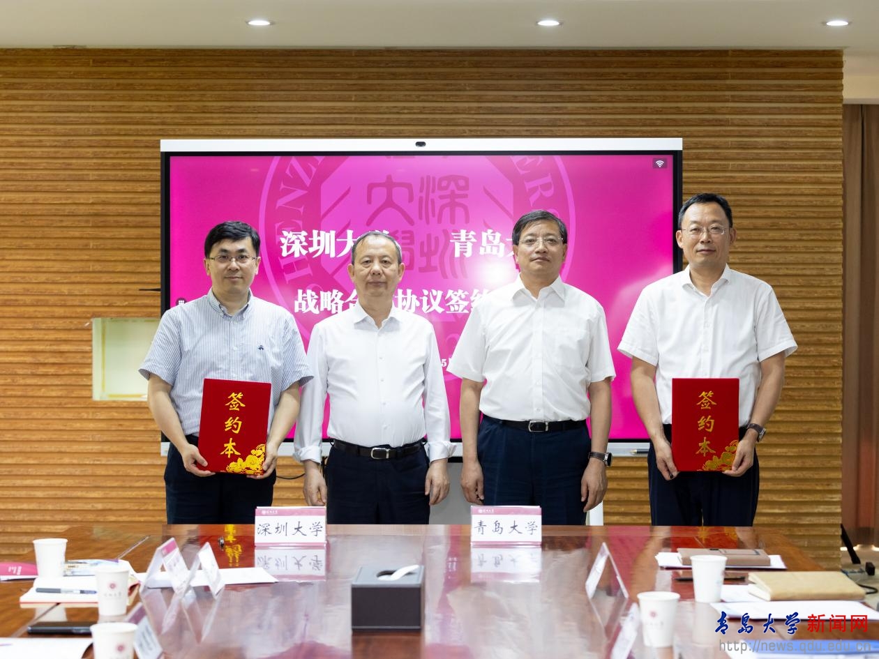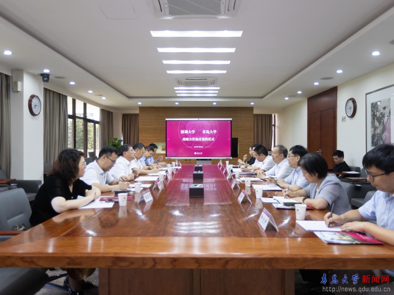 毛军发对魏志强一行表示欢迎。他指出,今年正值深圳经济特区成立45周年,也是深圳大学建校第42周年,深圳大学作为深圳市唯一一所综合性大学,与特区紧密联系、共同成长,在人才培养、科研创新等方面成果显著。目前全校正踔厉奋发、团结一致、全力冲刺入选“双一流”建设大学。深大与青大面临共同的机遇和挑战,希望双方相互交流,借鉴经验,携手共进。