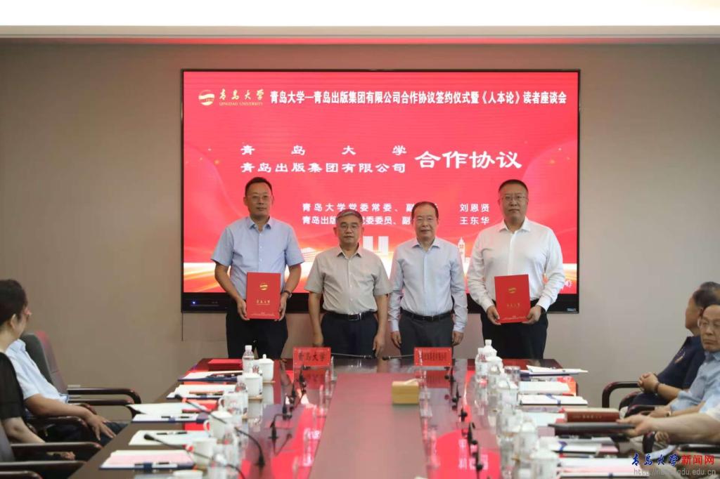 新闻网讯 8月6日,金年金与青岛出版集团有限公司合作协议签约仪式暨《人本论》读者座谈会在学校会议中心致远厅举行,校党委书记胡金焱出席活动。青岛出版集团有限公司党委书记、董事长贾庆鹏,青岛出版集团党委委员、副总经理,青岛出版社党委书记、董事长王东华参加活动。仪式由校党委常委、副校长刘恩贤主持。