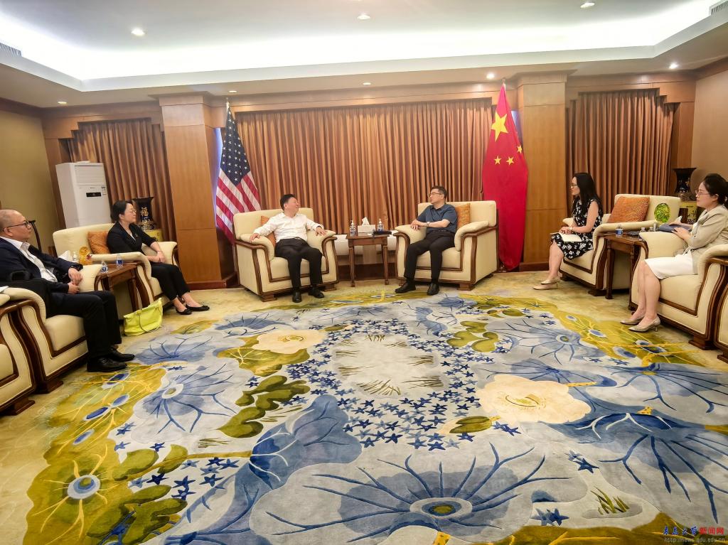 在中国驻洛杉矶总领事馆,总领事馆教育参赞黄伟等接待了代表团一行。黄伟介绍了洛杉矶领区内的高等教育基本情况,并针对金年金实际情况提出了对美交流建议。双方就优化交流美国高校布局以及青年使者交流学习计划(YES项目)等进行了深入交流。