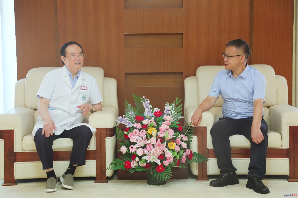 交谈过程中,肖江南向院士们简要汇报了学校一年来的发展成绩,并就医工交叉的学科发展思路、学校教师队伍建设、人才培养等方面与院士们进行了深入交流,听取了他们的意见和建议,恳请他们继续关注和支持学校的发展,并表示会进一步做好院士服务工作。院士们感谢学校长期以来的关心与重视,对学校各项事业发展的良好势头表示欣慰,表示将继续为学校事业发展贡献智慧与力量。